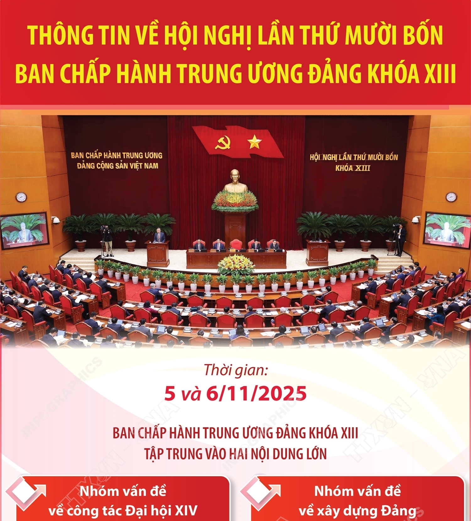 Hà Nội (TTXVN 5/11) Sáng 5/11/2025, Hội nghị lần thứ 14 Ban Chấp hành Trung ương Đảng khóa XIII đã khai mạc trọng thể tại Thủ đô Hà Nội. Tại Hội nghị lần thứ 14, Ban Chấp hành Trung ương Đảng khóa XIII tập trung vào hai nội dung lớn, đó là: Nhóm vấn đề về công tác Đại hội XIV của Đảng và Nhóm vấn về xây dựng Đảng và hệ thống chính trị. Trong từng nhóm vấn đề sẽ có nhiều nội dung cụ thể, đặc biệt trong nhóm vấn đề về Công tác Đại hội XIV của Đảng.
