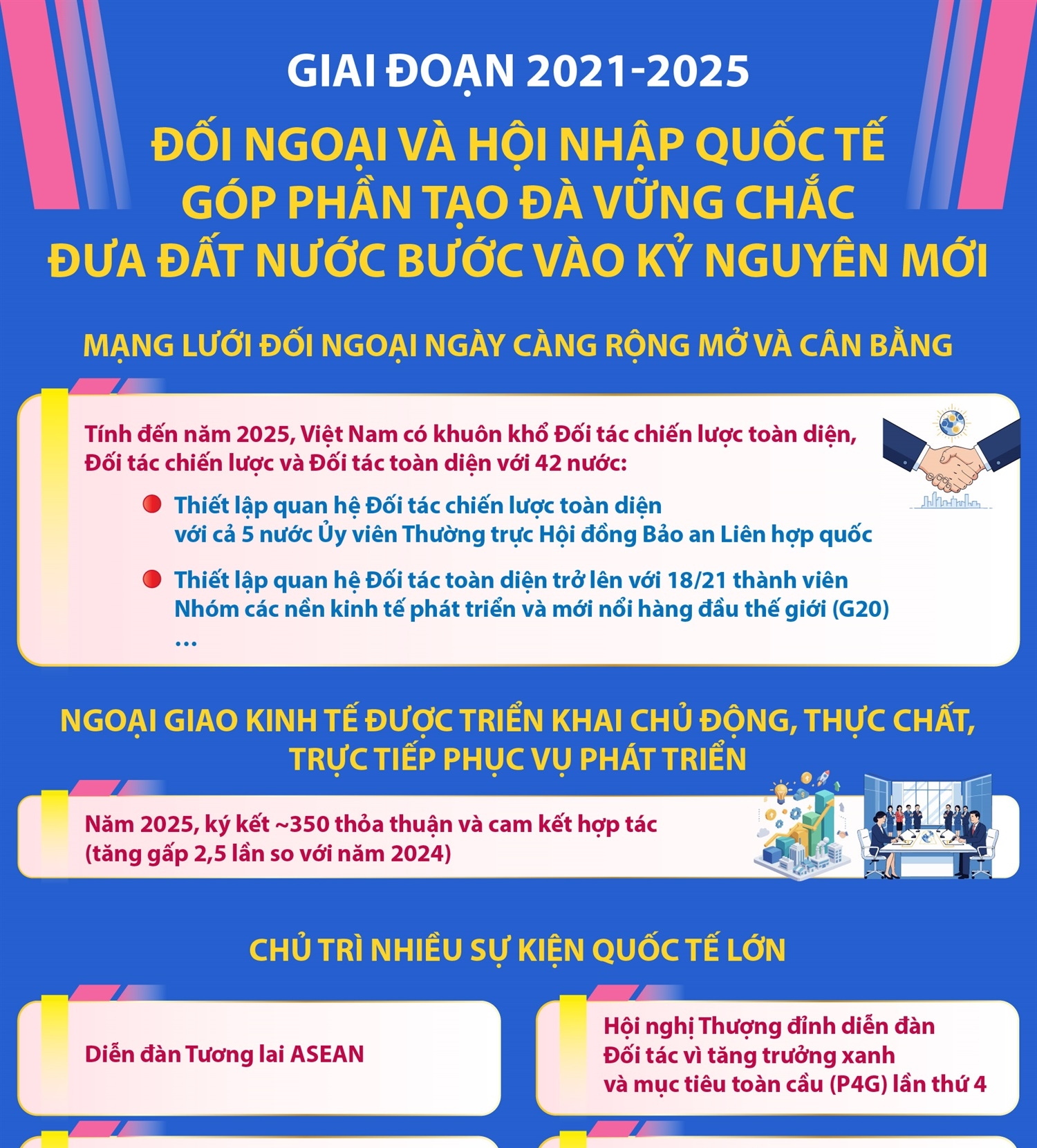 Hà Nội (TTXVN 18/2) Bài viết của Tổng Bí thư Tô Lâm "ĐẨY MẠNH ĐỐI NGOẠI TOÀN DIỆN Ở TẦM CAO MỚI" nhấn mạnh: Đối ngoại toàn diện ở tầm cao mới là sự kết hợp giữa kế thừa và phát triển. Đối ngoại tiếp tục kiên định: đường lối độc lập, tự chủ, tự cường, hòa bình, hữu nghị, hợp tác và phát triển, đa phương hóa, đa dạng hóa quan hệ đối ngoại; là bạn, là đối tác tin cậy, là thành viên có trách nhiệm trong cộng đồng quốc tế. Đồng thời nền đối ngoại Việt Nam tiếp tục phát triển, tiếp thu những tinh hoa, tri thức và phương pháp của ngoại giao hiện đại, thấm nhuần tinh thần “dĩ bất biến ứng vạn biến”. Con đường hòa bình, độc lập, tự chủ, tự cường không chỉ để xây dựng một đất nước giàu mạnh cho nhân dân mình mà còn để đóng góp có trách nhiệm cho hòa bình, ổn định của khu vực và trật tự thế giới dựa trên luật pháp. Đó là kim chỉ nam, là nền tảng đạo lý và là nguyên tắc cơ bản để chúng ta xây dựng các mối quan hệ đối ngoại bền vững. Đồng thời đối ngoại toàn diện phát triển lên một tầm cao mới, trong đó đối ngoại và hội nhập quốc tế phải là nhiệm vụ “trọng yếu, thường xuyên”. Đây là bước phát triển quan trọng về tư duy, theo đó đối ngoại, hội nhập quốc tế là một trong những nhiệm vụ chủ yếu, có tầm quan trọng hàng đầu; đồng thời phải được tiến hành thường xuyên, yêu cầu tính chủ động, nhạy bén, kịp thời và hiệu quả cao. Tư tưởng đó đặt đối ngoại ở một vị trí trung tâm, với trách nhiệm và vai trò cao hơn đối với an ninh và phát triển của đất nước: Giữ vững hòa bình để ổn định, ổn định để phát triển, phát triển để nâng cao sức mạnh tổng thể của đất nước.